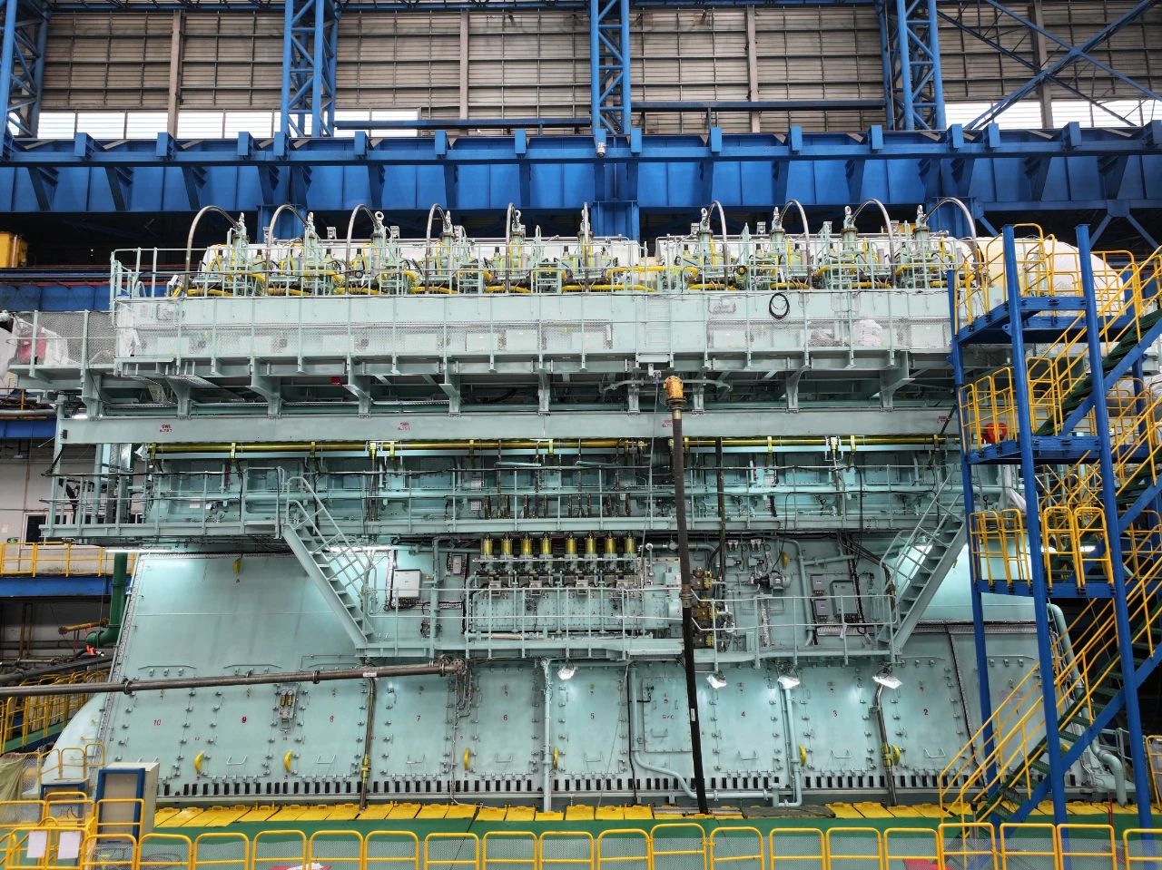 2月26日,由中國(guó)船舶集團(tuán)有限公司旗下中船溫特圖爾發(fā)動(dòng)機(jī)有限公司(WinGD)研發(fā)、中船動(dòng)力(集團(tuán))有限公司建造的世界最大功率甲醇雙燃料船用主機(jī)——CPGC/CMD-WinGD 10X92DF-M-1.0-LPSCR在上海交付。中船集團(tuán)黨組成員、副總經(jīng)理胡賢甫出席交付儀式并致辭。