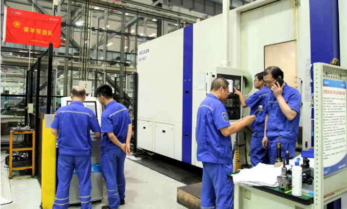 凌晨三點(diǎn)的中國(guó)船舶集團(tuán)旗下重慶紅江聯(lián)合廠(chǎng)房,室外,三伏天近40℃的高溫帶來(lái)的酷熱并沒(méi)有因入夜而降下來(lái);室內(nèi),機(jī)床轟響燈火通明,一號(hào)車(chē)間最先進(jìn)的三臺(tái)臥式加工中心開(kāi)足馬力全速運(yùn)轉(zhuǎn)。