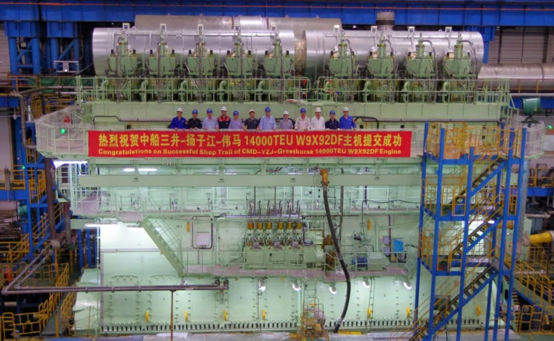 CMD-WinGD 9X92DF雙燃料主機最大功率42560kW,由中船動力集團下屬溫特圖爾發(fā)動機有限公司研發(fā),上海中船三井造船柴油機有限公司生產(chǎn)制造,將安裝在14000TEU集裝箱船上。