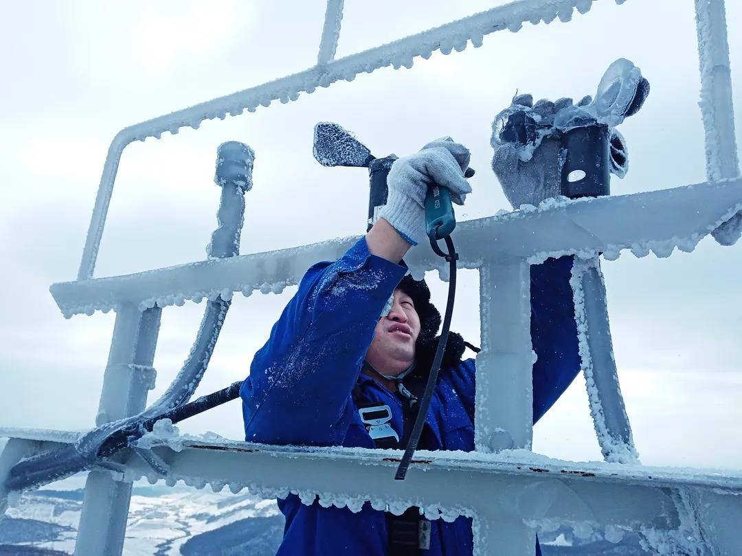 在遼寧昌圖天橋山項(xiàng)目,面對(duì)大雪降溫天氣,全體員工為保障風(fēng)電機(jī)組安全正常運(yùn)行,合力推車前往機(jī)位搶修。為恢復(fù)機(jī)組正常運(yùn)行,運(yùn)維人員人工給風(fēng)速風(fēng)向儀除冰。風(fēng)雪之中,總有人穿風(fēng)沐雪,在逆行在奮戰(zhàn),他們?cè) 把眾^戰(zhàn),卻說高處能勝寒。