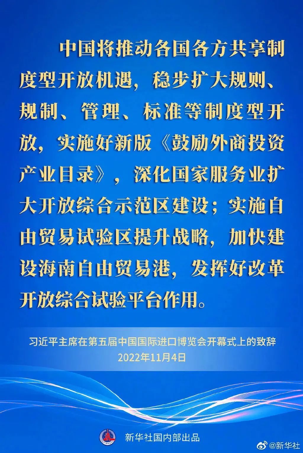 ——中國將推動各國各方共享制度型開放機遇,穩(wěn)步擴大規(guī)則、規(guī)制、管理、標準等制度型開放,實施好新版《鼓勵外商投資產(chǎn)業(yè)目錄》,深化國家服務業(yè)擴大開放綜合示范區(qū)建設;實施自由貿(mào)易試驗區(qū)提升戰(zhàn)略,加快建設海南自由貿(mào)易港,發(fā)揮好改革開放綜合試驗平臺作用。