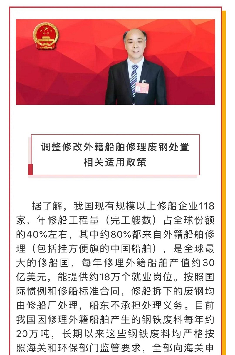 船舶看兩會(huì)|全國人大代表馬加友:修船廢鋼政策調(diào)整勢(shì)在必行!