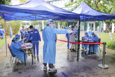 地處市區(qū)的廣州公司,迅速組建了一支以黨員為主的志愿者服務(wù)隊(duì),助力所在社區(qū)(鶴園居委會(huì))開(kāi)展全員常規(guī)核酸檢測(cè)現(xiàn)場(chǎng)服務(wù)工作,以實(shí)際行動(dòng)配合完成了6000多名居民核酸檢測(cè)任務(wù)。該公司職教事業(yè)部2所學(xué)校2000余名學(xué)生分轄荔灣、黃埔兩區(qū),學(xué)校教職工主動(dòng)作為,積極配合醫(yī)護(hù)人員維護(hù)現(xiàn)場(chǎng)秩序、信息登記、查核健康碼等,順利完成2輪全員核酸檢測(cè)工作。