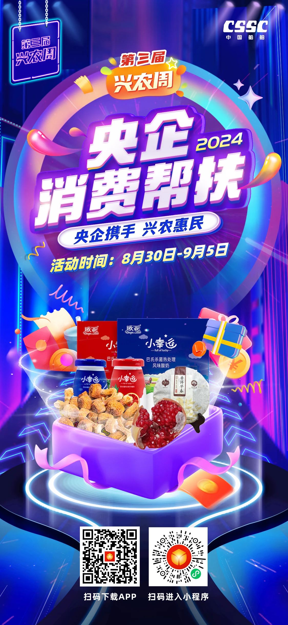 百家央企聚合力,消費(fèi)幫扶促振興。8月30日~9月5日,第三屆“央企消費(fèi)幫扶興農(nóng)周”熱情來襲、盛大啟動(dòng)!