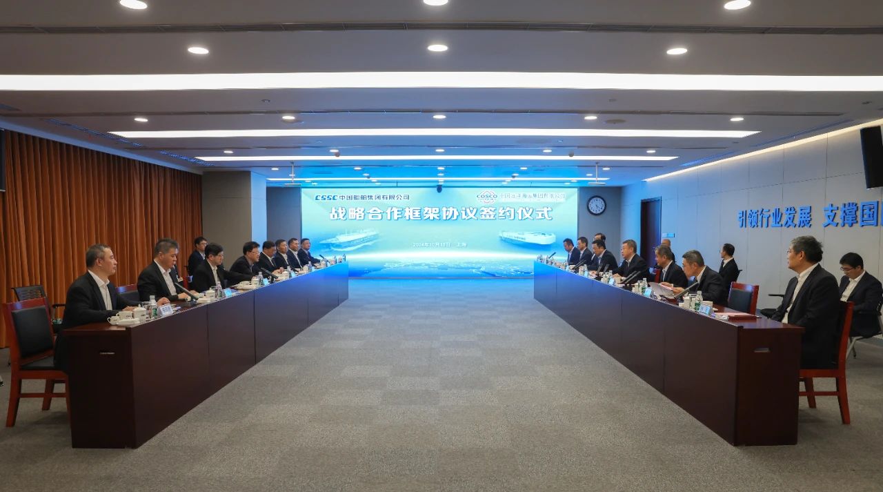 10月15日,中國船舶集團有限公司與中國遠(yuǎn)洋海運集團有限公司在上海簽訂戰(zhàn)略合作框架協(xié)議。中國船舶集團黨組書記、董事長溫剛,中遠(yuǎn)海運集團黨組書記、董事長萬敏,黨組副書記、總經(jīng)理朱碧新出席簽約儀式。中國船舶集團黨組成員、副總經(jīng)理盛紀(jì)綱,紀(jì)檢監(jiān)察組組長、黨組成員彭宏,中遠(yuǎn)海運集團黨組成員、副總經(jīng)理、總會計師孫云飛出席簽約儀式。盛紀(jì)綱和孫云飛分別代表雙方在協(xié)議上簽字。簽約前,雙方就進一步加強溝通交流、深化多領(lǐng)域合作進行了交流探討。