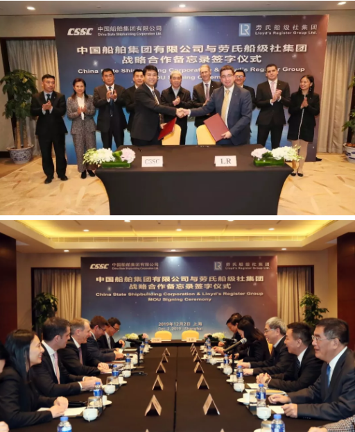 ????12月2日,中國船舶集團有限公司與勞氏船級社集團在上海簽訂戰(zhàn)略合作備忘錄,標志著雙方的合作開啟了新的歷史篇章。中國船舶集團董事長雷凡培,副總經理孫偉、姜仁鋒,勞氏船級社集團首席執(zhí)行官Alastair Marsh共同見證雙方簽約。中國船舶集團副總經理杜剛、勞氏船級社集團船舶與海工總裁Nick Brown分別代表雙方在備忘錄上簽字。簽約前,雙方圍繞全球船舶海工市場及技術發(fā)展趨勢作了交流,就進一步加強交流溝通、深化戰(zhàn)略合作進行了深入探討并達成廣泛共識。