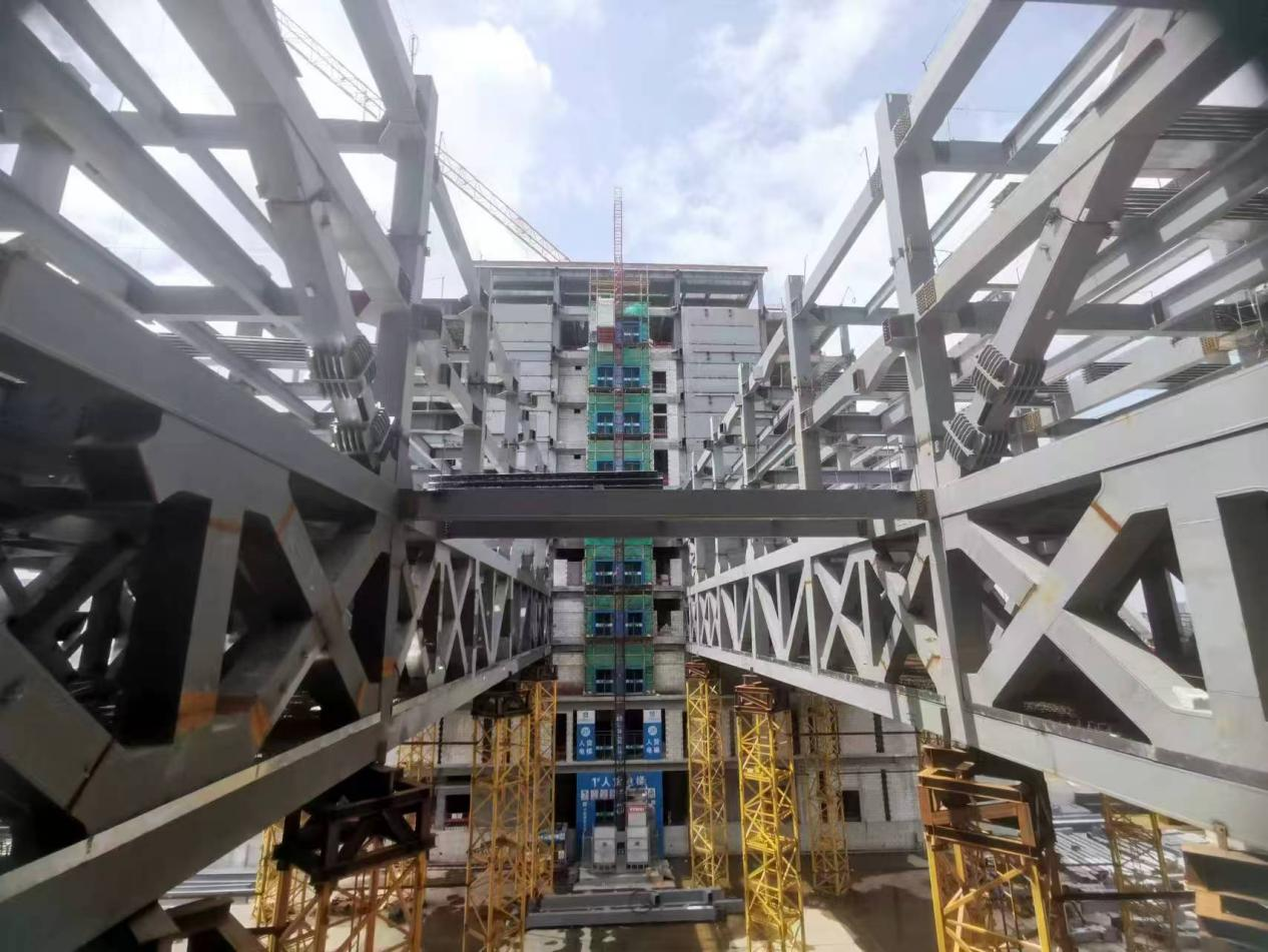 過去五年間,團隊肩負雙重使命,既要積極探索新興技術領域,又要緊密貼合實際需求,開展針對性技術攻關。面對大跨度建筑高效承載與裝配式鋼結構工廠化制造的行業難題,團隊深入剖析痛點,歷經多次驗證、迭代與優化,最終成功突破了技術“瓶頸”,創新研發出獲獎專利——“大跨度支座跨中協同預應力箱形連續鋼梁柱結構”。該新型結構可優化結構受力分布,顯著提升彈性承載力,有效減少鋼梁跨中撓度與支座變形,既增強了大跨度建筑韌性,又滿足了受損建筑快速功能恢復的特殊需求。為不斷提升自身技術水平,團隊還積極開展交叉學科研究,在技術與進度雙重壓力的嚴峻考驗下,憑著“死磕”到底的韌勁,各司其職、緊密協作,共同推動了多項配套產品的成功研發與落地,為行業整體技術革新貢獻了重要力量。
