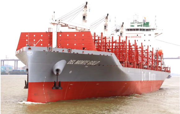 近日,中國船舶集團(tuán)旗下黃埔文沖為美國Del Monte公司建造的600FEU全冷藏集裝箱船首制船“DEL MONTE GOLD”號交付。該型船總長192米,型寬30米,設(shè)計吃水9.3米,為國際遠(yuǎn)洋冷藏集裝箱船,全部貨柜箱均為冷藏集裝箱,是一款冷箱量大、裝載靈活、便于維護(hù)的綠色環(huán)保型船舶。