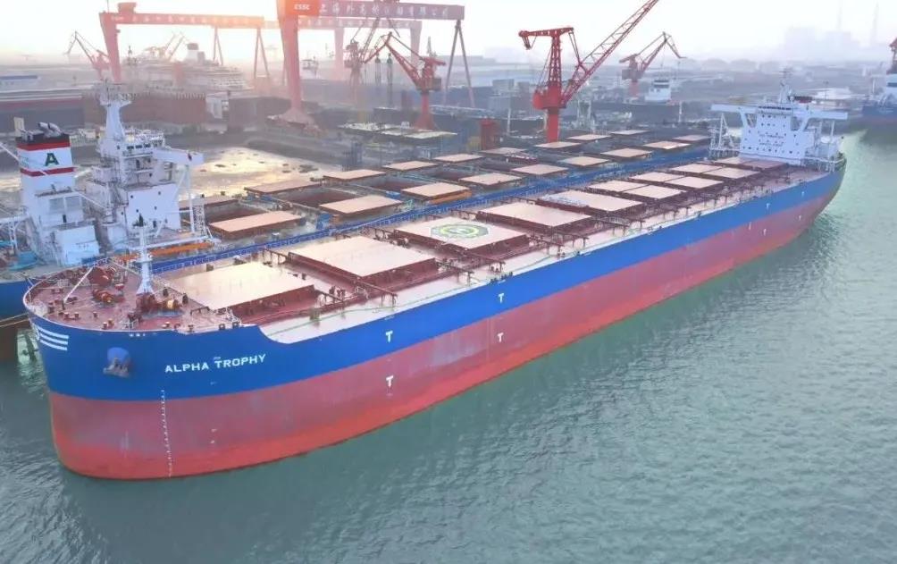 1月1日上午,中國(guó)船舶集團(tuán)旗下外高橋造船聯(lián)合中船貿(mào)易建造的21萬(wàn)噸紐卡斯?fàn)栃蜕⒇洿癆LPHA TROPHY”號(hào)簽字交船,這是中國(guó)船舶企業(yè)新的一年完工交付的第一艘船,開啟中國(guó)船舶制造業(yè)2022年昂揚(yáng)奮進(jìn)新征程。