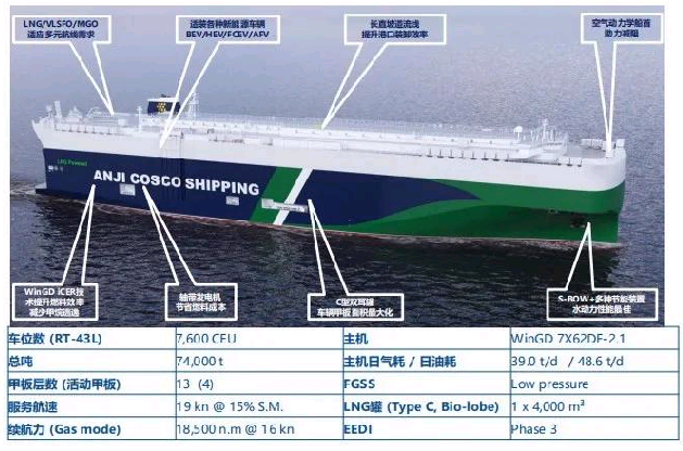 適應(yīng)國際汽車工業(yè)的生產(chǎn)消費(fèi)及運(yùn)輸?shù)淖兓厔?,是一款符合國際最新規(guī)則的新一代超巴拿馬型汽車運(yùn)輸船。