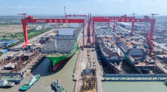 近日,24000TEU系列集裝箱船(H1873A)在中國(guó)船舶集團(tuán)旗下滬東中華長(zhǎng)興島西部廠區(qū)1號(hào)船塢提前11天出塢。在建造團(tuán)隊(duì)努力下,該船出塢完整性達(dá)到系列船最佳,為縮短碼頭建造周期創(chuàng)造有利條件。