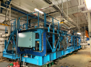 中國(guó)船舶集團(tuán)七一一所自主研制的該船液貨系統(tǒng)的核心設(shè)備—LNG深冷式再液化裝置,歷時(shí)3年的技術(shù)攻關(guān),突破多項(xiàng)關(guān)鍵技術(shù),成功開(kāi)發(fā)了大功率磁懸浮壓縮/膨脹機(jī)組,實(shí)現(xiàn)零下175℃的高效大冷量輸出。