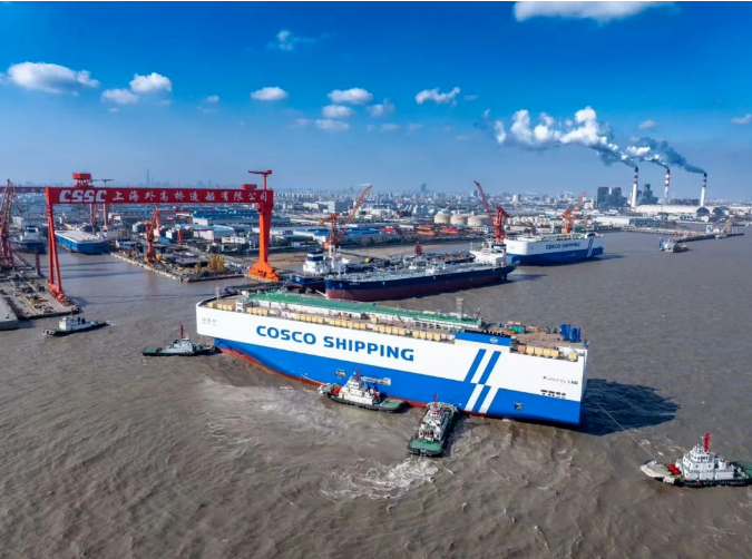 2月8日,中船集團(tuán)旗下外高橋造船一號(hào)船塢傳來喜訊。為希臘Oceangold公司建造的首制11.4萬噸阿芙拉型成品油船和為中信金融租賃公司建造的第二艘8600車滾裝汽車運(yùn)輸船(PCTC)提前2天實(shí)現(xiàn)出塢節(jié)點(diǎn)。
