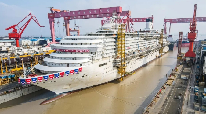 “愛達·花城號”由中船集團旗下外高橋造船于2022年8月開工建造,去年4月入塢搭載,今年1月實現(xiàn)全船貫通。“愛達·花城號”長341米、寬37.2米、約14.19萬總噸,相比首艘國產(chǎn)大型郵輪“愛達·魔都號”體量更大、建造物量更多,對設(shè)計建造管理能力提出了更高要求。目前,“愛達·花城號”整體建造進度已超過70%,比“愛達·魔都號”起浮時總進度提前12%,結(jié)構(gòu)總裝周期縮短至9個月,標志著我國大型郵輪建造技術(shù)邁上了新臺階。