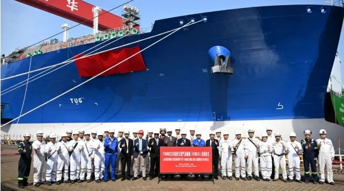 17.4萬立方米LNG運輸船“遠(yuǎn)海奮進(jìn)”號(Ocean Inspiration)在滬東中華新廠區(qū)正式命名。