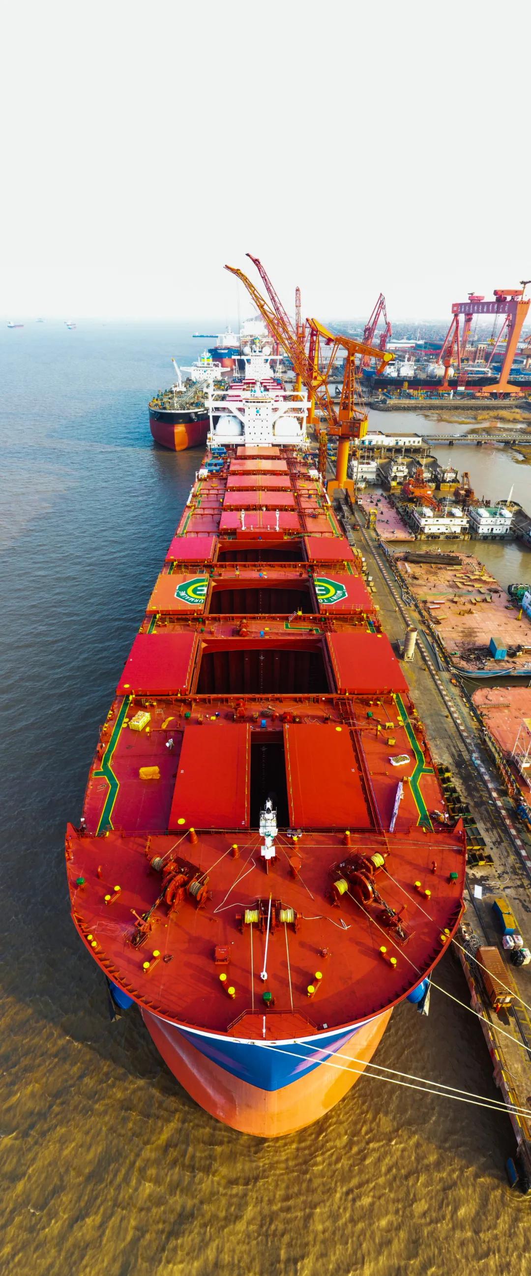 該船的交付,標志著中國船舶工業在大型散貨船設計建造領域邁入“雙燃料”新時代,并擁有了引領國際大型散貨船市場綠色環保低碳發展趨勢的全新品牌船型。