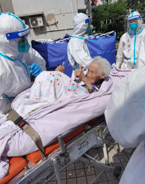 “我們是穿著防護(hù)服進(jìn)去的,突然看到這么多‘大白’,老人們不免有些緊張,問(wèn)的最多的就是‘去哪里’。隨著我們一趟趟幫著老人下樓、上車,老人們開始逐漸信任我們。因?yàn)檗D(zhuǎn)運(yùn)的部分老人中存在核酸異常的情況,有些老人還會(huì)時(shí)不時(shí)關(guān)照我們要注意防護(hù)。幫他們送上救護(hù)車時(shí),老人還和我們連聲表示感謝。”田雪明說(shuō)道。