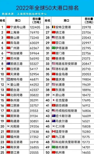 從規模上講,在世界排名前十的港口當中,中國占有八席。