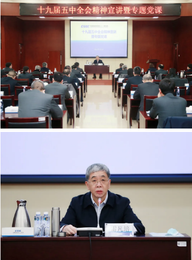 12月22日,中國船舶集團有限公司黨組書記、董事長雷凡培到中國船舶集團七〇一所講黨課,宣講黨的十九屆五中全會精神,并就學習貫徹落實全會精神、謀劃“十四五”高質量發展提出要求。