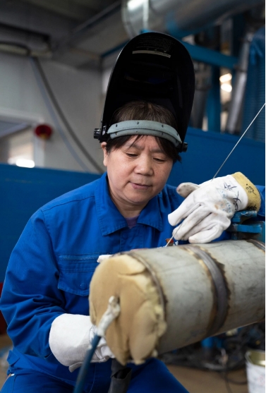 至今,朱瑞霞已經(jīng)參與了“遠(yuǎn)望”系列船、“雪龍2”號、南昌艦等國家重點項目的焊接工作。她說,當(dāng)時有人高度評價稱:“你焊的管子可以免檢。”但壓力也隨之而來,“我當(dāng)時就想,船一出海就是半年,我的焊接要是出問題,就是人命關(guān)天?!闭且驗檫@種“軸”,朱瑞霞先后攻克了鎳銅管焊接變形、HDR不銹鋼焊接、鈦合金焊接等一系列高難度問題。她主導(dǎo)研發(fā)了十余項焊接專利技術(shù),攻克了薄壁管道焊接難題,還創(chuàng)新研制了特有的工裝,獲得外國專家的認(rèn)可和推廣應(yīng)用。
