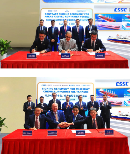 此次展會上,集團(tuán)公司有關(guān)成員單位負(fù)責(zé)人率隊赴展會開展重點(diǎn)船海項目經(jīng)營洽談并拜訪當(dāng)?shù)睾椭苓厙抑饕蛻簟<瘓F(tuán)公司以“高端綠色、領(lǐng)跑未來”為參展主題,展臺設(shè)置了集團(tuán)總體區(qū)、高端綠色船舶區(qū)、先進(jìn)動力配套區(qū)共3個展示區(qū)域,重點(diǎn)展示了首艘國產(chǎn)大型郵輪、27.1萬立方米超大型LNG(液化天然氣)運(yùn)輸船、10800車LNG雙燃料汽車運(yùn)輸船、全球首艘LNG雙燃料VLCC(超大型油船)、21萬噸氨燃料散貨船、9.3萬立方米超大型全冷式液化氣船等一系列技術(shù)含量高、全球競爭力強(qiáng)的高端綠色船型,以及CPGC-WinGD 10X92DF-M甲醇雙燃料發(fā)動機(jī)、船用供氣系統(tǒng)、船用碳捕捉系統(tǒng)、船舶新能源動力系統(tǒng)解決方案等滿足IMO(國際海事組織)當(dāng)前和未來排放要求的先進(jìn)動力配套設(shè)備,充分彰顯了中國船舶集團(tuán)的國際化品牌形象及引領(lǐng)國際船舶市場創(chuàng)新發(fā)展的澎湃動力。
