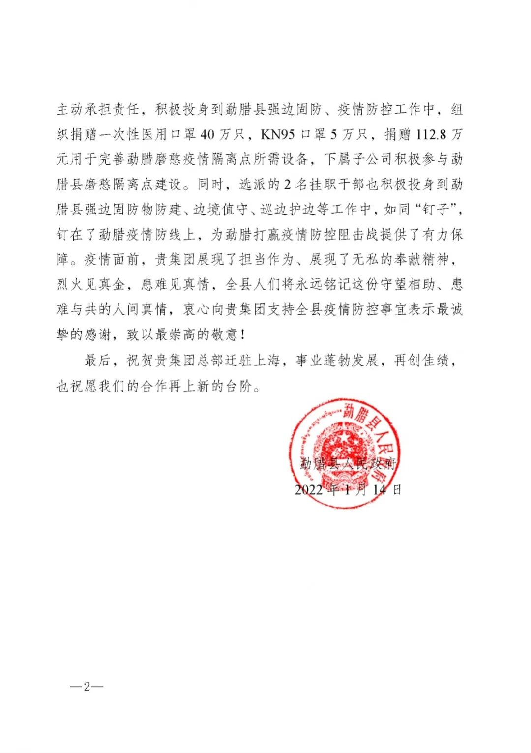 春節(jié)前夕,中國(guó)船舶集團(tuán)陸續(xù)收到云南省委省政府、文山州委州政府、鶴慶縣委縣政府、勐臘縣政府發(fā)來的感謝信,對(duì)集團(tuán)公司長(zhǎng)期以來給予鶴慶縣、勐臘縣、丘北縣的傾力幫扶表示衷心感謝和崇高敬意。